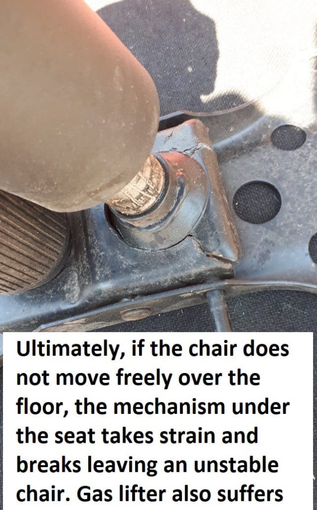 - Damaged Mechanism: The Mechanism or lever lever that activates the gas lift might be loose, disconnected, or broken. It is mild steel and can break/tear when abused (rocking on the chair, leaning back further that the chair’s natural motion will allow, etc)